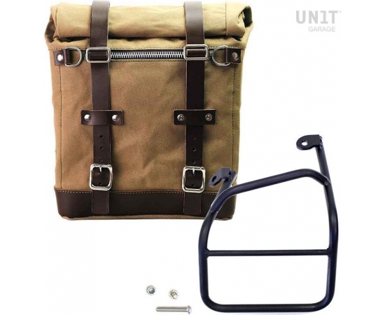 Unit Garage Canvas Side Pannier Scram 22L-30L + Left subframe Ducati Scrambler 1100, Beige/Brown | U201+1010SX-Beige-Brown
