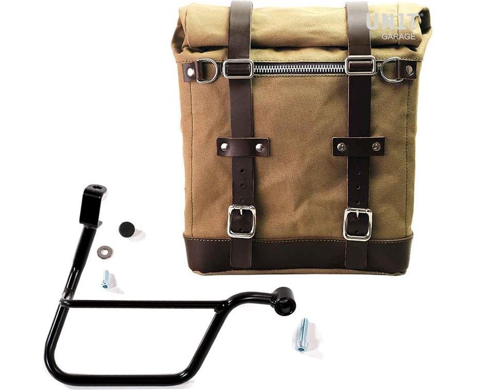Unit Garage Canvas Side Pannier Scram 22L-30L + Right Subframe Triumph T100 (2017 until now), Beige/Brown | U201+1011DX-Beige-Brown