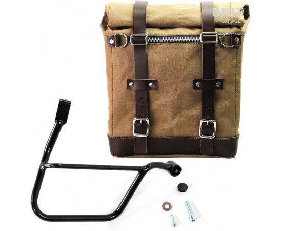 Unit Garage Canvas Side Pannier Scram 22L-30L + Right Subframe Triumph Street 900 Series (2017 until now), Beige/Brown | U201+1013DX-Beige-Brown