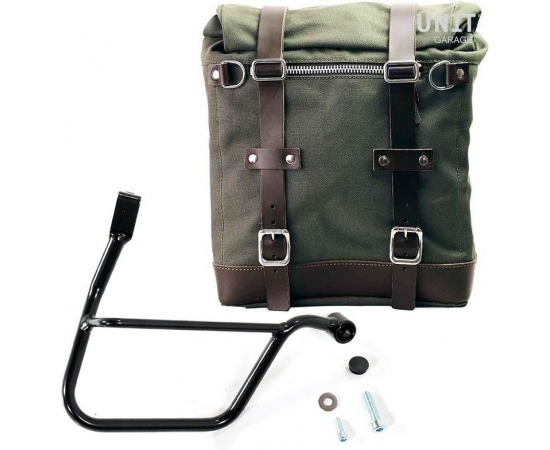 Unit Garage Canvas Side Pannier Scram 22L-30L + Right Subframe Triumph Street 900 Series (2017 until now), Green/Brown | U201+1013DX-Green-Brown