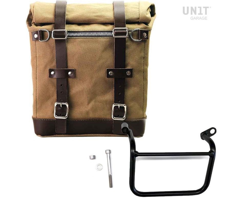 Unit Garage Canvas Side Pannier Scram 22L-30L + Left Subframe Triumph Scrambler 1200 XC_XE (2019 until now), Beige/Brown | U201+1019SX-Beige-Brown