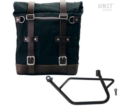 Unit Garage Canvas Side Pannier Scram 22L-30L + Left Subframe Kawasaki Z900RS, Black/Brown | U201+1021SX-Black-Brown
