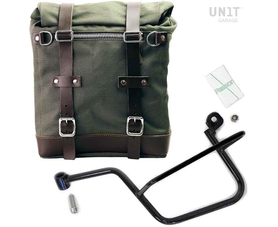 Unit Garage Canvas Side Pannier Scram 22L-30L + Left Subframe Guzzi V7, Green/Brown | U201+2213SX-Green-Brown