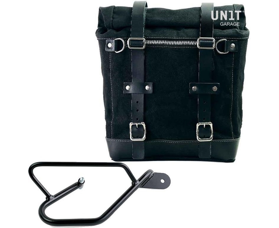 Unit Garage Canvas Side Pannier Scram 22L-30L + Right Subframe Guzzi V9 Bobber, Black/Black | U201+2250DX-Black-Black