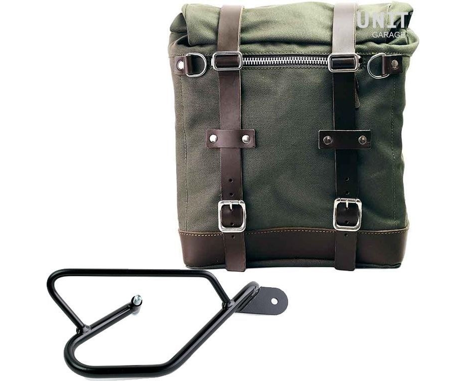 Unit Garage Canvas Side Pannier Scram 22L-30L + Right Subframe Guzzi V9 Bobber, Green/Brown | U201+2250DX-Green-Brown