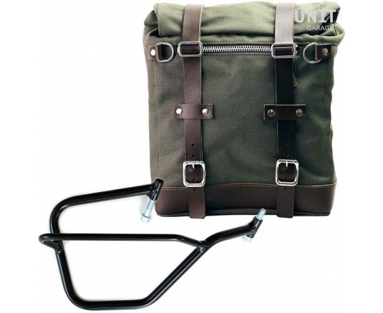 Unit Garage Canvas Side Pannier Scram 22L-30L + Right Subframe Yamaha, Green/Brown | U201+2504DX-Green-Brown