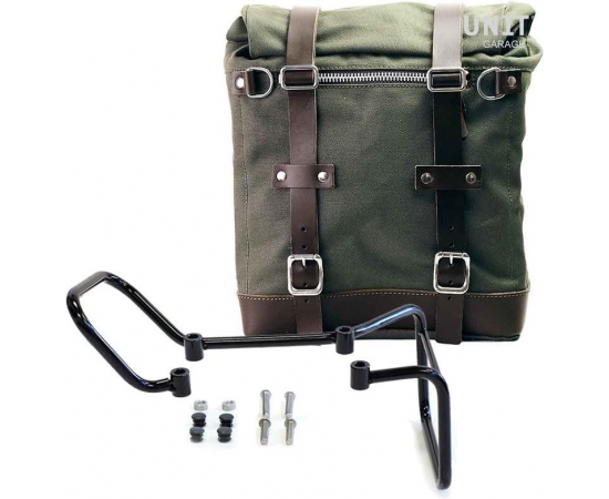 Unit Garage Canvas Side Pannier Scram 22L-30L + Subframe husqvarna 401 (2017-2019), Green/Brown | U201+3000-Green-Brown