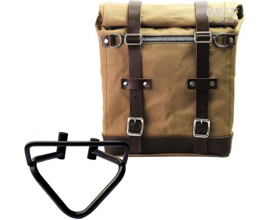 Unit Garage Canvas Side Pannier Scram 22L-30L + Right Subframe husqvarna 200 (2020 until now), Beige/Brown | U201+3003DX-Beige-Brown
