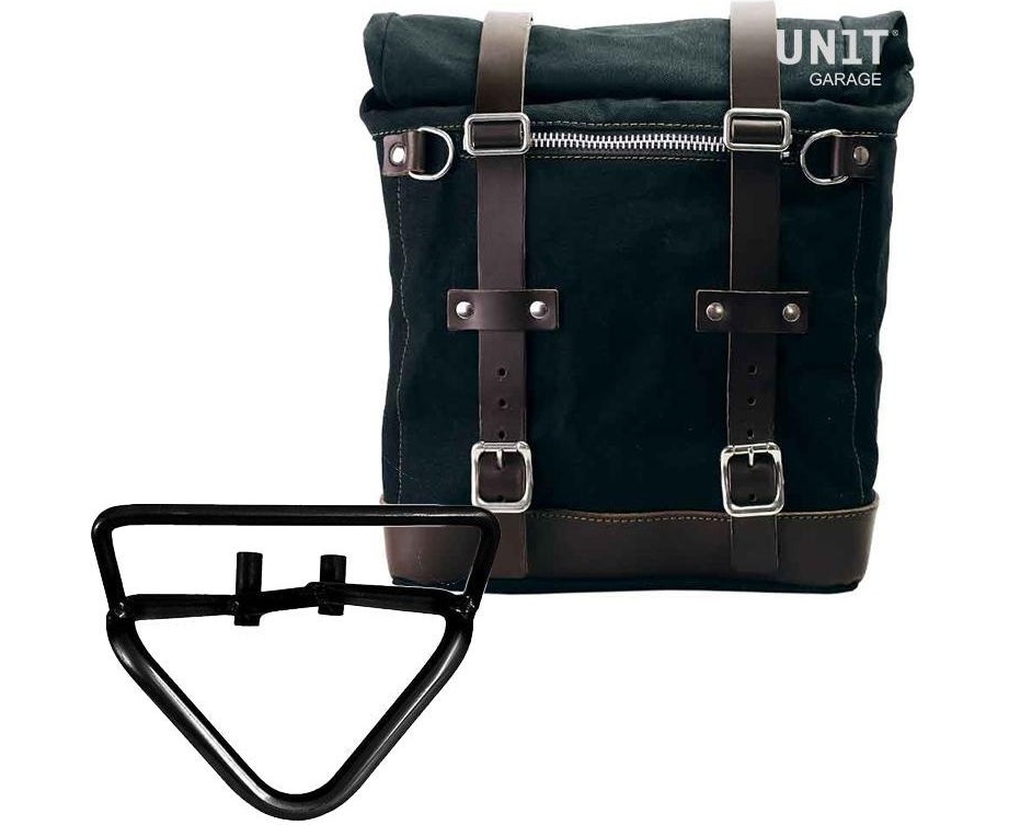 Unit Garage Canvas Side Pannier Scram 22L-30L + Right Subframe husqvarna 401 (2020 until now), Black/Brown | U201+3004DX-Black-Brown