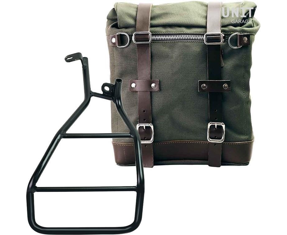 Scram side pannier, extendable from 22 to 30 liters handmade in Italy in sturdy waterproof cotton of the highest quality.
