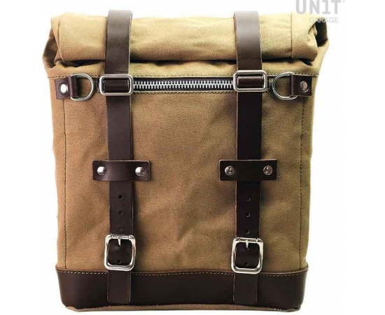 Scram side pannier, extendable from 22 to 30 liters handmade in Italy in sturdy waterproof cotton of the highest quality.