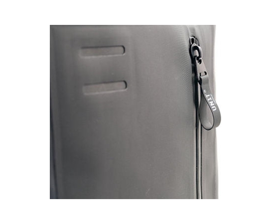 It attaches easily to our sub frame with the quick release system Cod.U000 already installed on the back of the bag. With the included key the quick release system can be closed, locking the bag to the frame. It is big enough to easily fit a 15" laptop, and is equipped with a large waterproof zipped pocket on the front.
