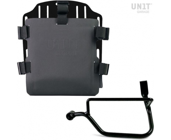 Carrying system in aluminum complete with adjustable Hypalon front. It quickly attaches to our pannier sub frames with the quick release system cod.U000 already included and mounted on the back of the plate. With the included key the quick release system can be closed, locking the carrying system to the frame. The plate creates a flat mounting surface on the side of the bike, this will allow the transport of various types of bags and other objects, such as sleeping bags, jackets etc. The front flap in Hypalon can be adjusted using the supplied sliders and can be removed very quickly from the plate.