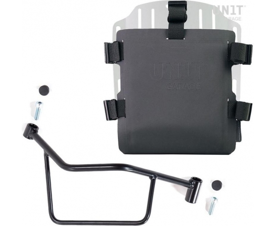 Carrying system in aluminum complete with adjustable Hypalon front. It quickly attaches to our pannier sub frames with the quick release system cod.U000 already included and mounted on the back of the plate. With the included key the quick release system can be closed, locking the carrying system to the frame. The plate creates a flat mounting surface on the side of the bike, this will allow the transport of various types of bags and other objects, such as sleeping bags, jackets etc. The front flap in Hypalon can be adjusted using the supplied sliders and can be removed very quickly from the plate.