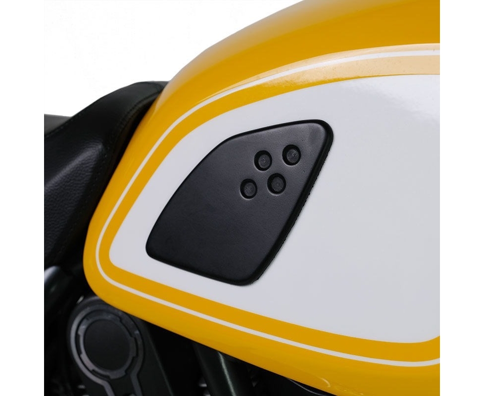 Pair of rubber knee pads. With strong adhesive, ready for assembly. Completes the look of the tank and protect the knees in off-road use. A mounting template is provided.