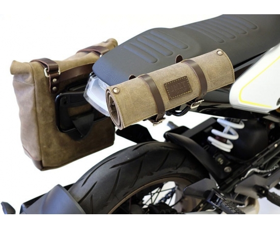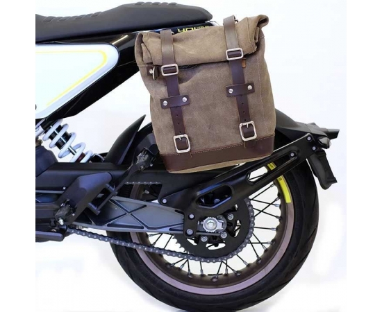 Side pannier made by hand in Italy in top quality rugged split leather treated with wax to make it waterproof.