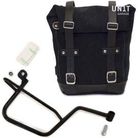 Unit Garage Waxed Suede Side Pannier + Left Subframe Guzzi V7_850, JetBlack | U002+2216SX-JetBlack