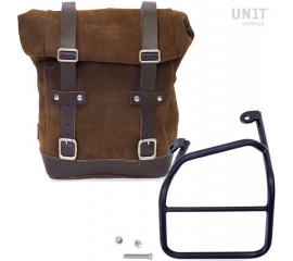Unit Garage Waxed Suede Side Pannier + Left frame for Ducati Scrambler 1100 with double exhaust on the right, ColoradoBrown | U002+1009SX-ColoradoBrown