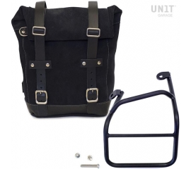 Unit Garage Waxed Suede Side Pannier + Left Subframe Ducati Scrambler 1100, JetBlack | U002+1010SX-JetBlack