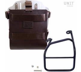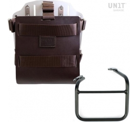 Unit Garage Carrying system in aluminum with adjustable leather front, Quick Release System and frame Scrambler 1100 with double exhaust on the right, Brown/Black | U085+U000+1009SX-Brown-Black