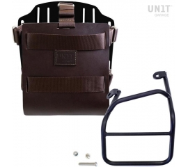 Unit Garage Canvas Side Pannier Scram 22L-30L +Left frame for Ducati Scrambler 1100 with double exhaust on the right, Black/Brown | U201+1009SX-Black-Brown