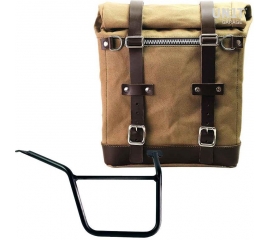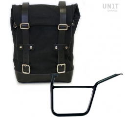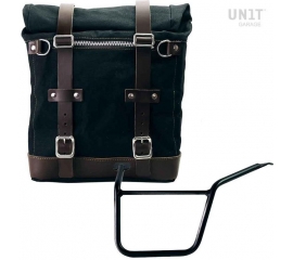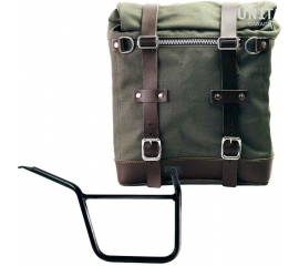 Article Number : U001-3304SX Side pannier with Left subframe Side pannier made by hand in Italy in top quality waterproof waxed canvas. Simple and pure with beautiful details in 3mm thick leather trim. It attaches easily to our sub frame with the quick release system Cod.U000 already installed...