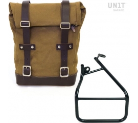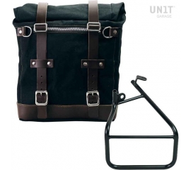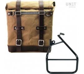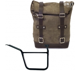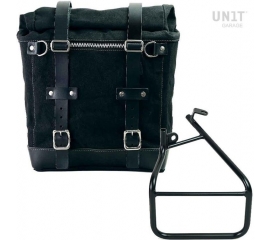 Article Number : U001-3320SX Side pannier with Left subframe Side pannier made by hand in Italy in top quality waterproof waxed canvas. Simple and pure with beautiful details in 3mm thick leather trim. It attaches easily to our sub frame with the quick release system Cod.U000 already installed...