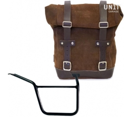 Article Number : U002-3320SX Side pannier with subframe Side pannier made by hand in Italy in top quality waxed suede. Simple and pure with beautiful details in 3mm thick leather trim. It attaches easily to our sub frame with the quick release system Cod.U000 already installed on the back of the...