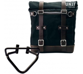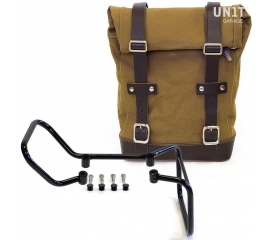 Article Number : U001-3001 Side pannier with subframe Side pannier made by hand in Italy in top quality waterproof waxed canvas. Simple and pure with beautiful details in 3mm thick leather trim. It attaches easily to our sub frame with the quick release system Cod.U000 already installed on the...