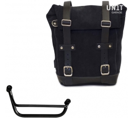 Unit Garage Waxed Suede Side Pannier + Right Subframe Guzzi V85 TT, JetBlack | U002+2251DX-JetBlack