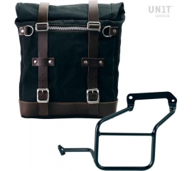 Unit Garage Side Pannier Canvas + Left Subframe Aprilia Tuareg 660, Black/Brown | U001+3600SX-Black-Brown