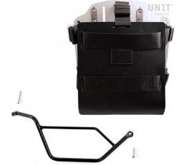 Article Number : U002-1524DX Side pannier with subframe Side pannier made by hand in Italy in top quality rugged split leather treated with wax to make it waterproof. Simple and pure with beautiful details in 3mm thick leather trim. It attaches easily to our sub frame with the quick release...