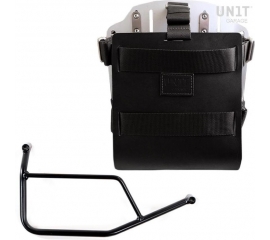 Article Number : U002-2101SX Side pannier with subframe (left side) Side pannier made by hand in Italy in top quality rugged split leather treated with wax to make it waterproof. Simple and pure with beautiful details in 3mm thick leather trim. It attaches easily to our sub frame with the quick...