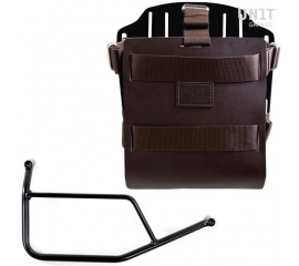 Article Number : U002-1421 Side pannier with subframe Side pannier made by hand in Italy in top quality rugged split leather treated with wax to make it waterproof. Simple and pure with beautiful details in 3mm thick leather trim. It attaches easily to our sub frame with the quick release system...