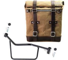 Article Number : U001-1806 Side pannier with subframe Side pannier made by hand in Italy in top quality waterproof waxed canvas. Simple and pure with beautiful details in 3mm thick leather trim. It attaches easily to our sub frame with the quick release system Cod.U000 already installed on the...