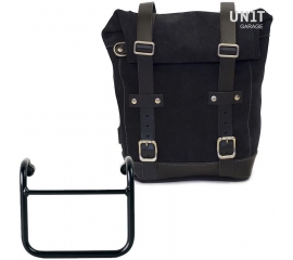 Unit Garage Waxed suede Side Pannier + Subframe R18 for Straight pipe exhaust, JetBlack | U002+3400-JetBlack