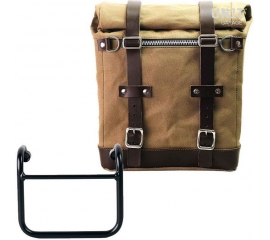 Unit Garage Canvas Side Pannier Scram 22L-30L + R18 frame for Fishtail exhaust, Beige/Brown | U201+3401-Beige-Brown