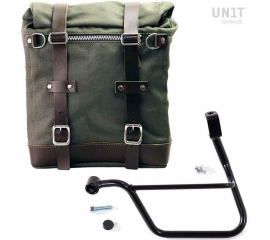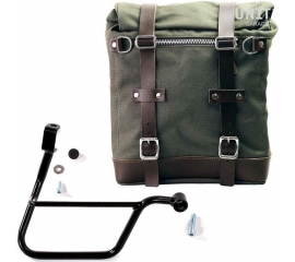 Unit Garage Canvas Side Pannier Scram 22L-30L + Left Subframe Triumph T100 (2017 until now), Green/Brown | U201+1011SX-Green-Brown
