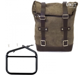 Unit Garage Canvas Side Pannier Scram 22L-30L + Right subframe Ducati Scrambler, Green/Brown | U201+1007DX-Green-Brown