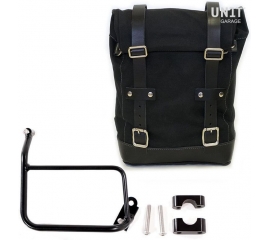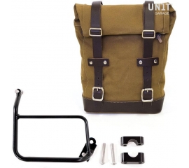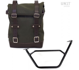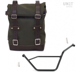 Article Number : U001-1901SX Side pannier with subframe Side pannier made by hand in Italy in top quality waterproof waxed canvas. Simple and pure with beautiful details in 3mm thick leather trim. It attaches easily to our sub frame with the quick release system Cod.U000 already installed on the...