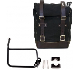 Article Number : U001-1901DX Side pannier with right subframe Side pannier made by hand in Italy in top quality waterproof waxed canvas. Simple and pure with beautiful details in 3mm thick leather trim. It attaches easily to our sub frame with the quick release system Cod.U000 already installed...