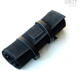 Article Number : U009 At the beginning we thought of a robust tool roll in waxed leather crust, then we realized that it was also excellent for transport ... for example of rain suits or for a spare T-shirt. The buckle can be moved at will and the roll changes shape and size. Colours:Moss Grey...