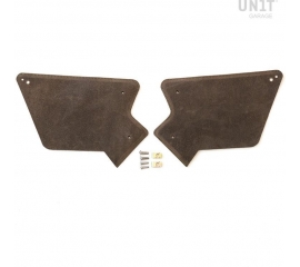 Article Number : 1560 Side panels made in waxed split leather with plastic insert, complete with screws and fastening clips. The original seat completely covers the fuel tank, but we wanted a more classic look, so we have opted for this solution that in a very simple way finishes the tank and...