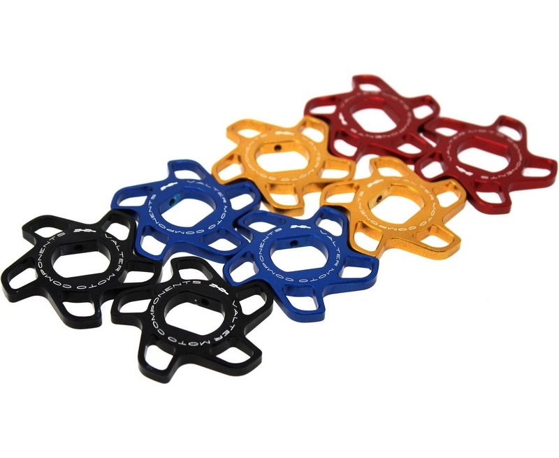 Aluminum fork preload adjusters provided with allen key. Available in Black, Blue, Gold, Red, Green