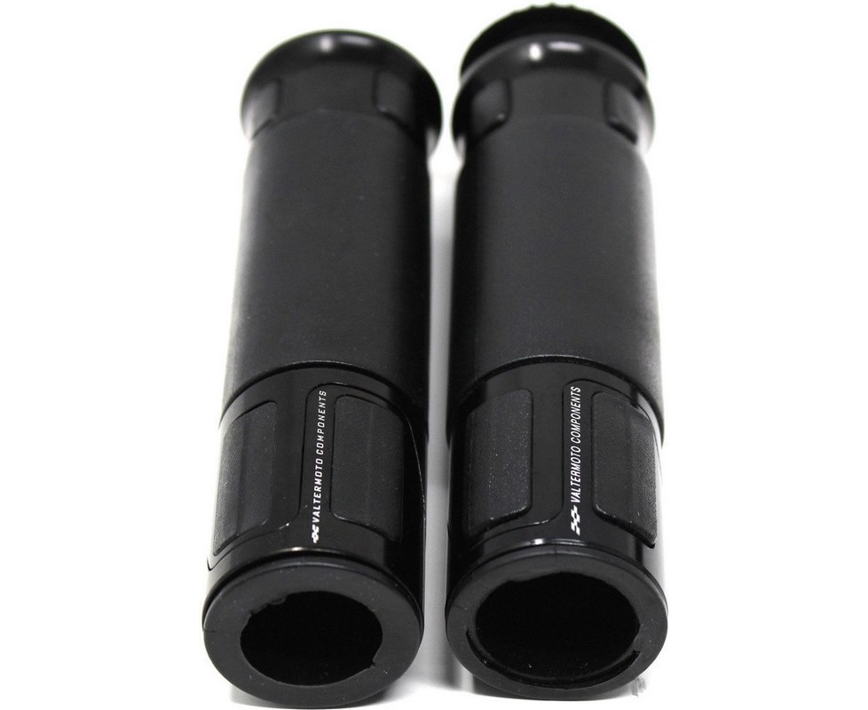 "No slippery" rubber with 3 aluminum CNC machined inserts. Fit on all 22 mm handlebars. Throttle gears included. Unusable on Aprilia, MV, KTM, BMW and electronic throttle system.