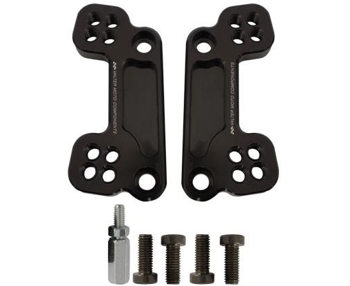 Rearsets adjuster kit allows to change original rearsets position till 25/30 mm rear and high by 2/4 different set-up points to find the best feeling. Entirely made with CNC machinery in Ergal 7075 T5 alloy are provided with a shift rod extension to avoid any modify during assembly. They are available only in black color