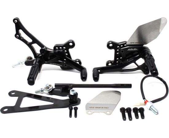 Rearsets are provided with stainless steel heel protections, correct lenght shift rod, shift and brake ball joints, brake light pressure switch.