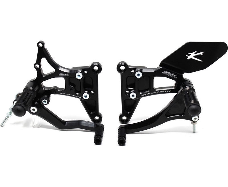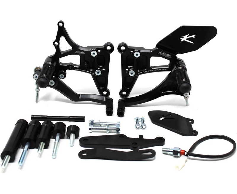 Rearsets are provided with black aluminum heel protections, the correct lenght shift rod, shift and brake ball joints, brake light pressure switch.