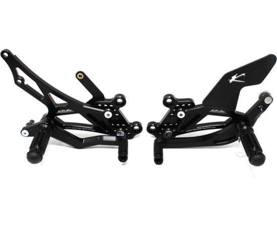 Type 1.5 adjustable rearsets made with Ergal 7075 T5 Alu. Heel protections in aluminum. Street/Track use. Reverse shift. TÜV approved KBA homologated with ABE number.