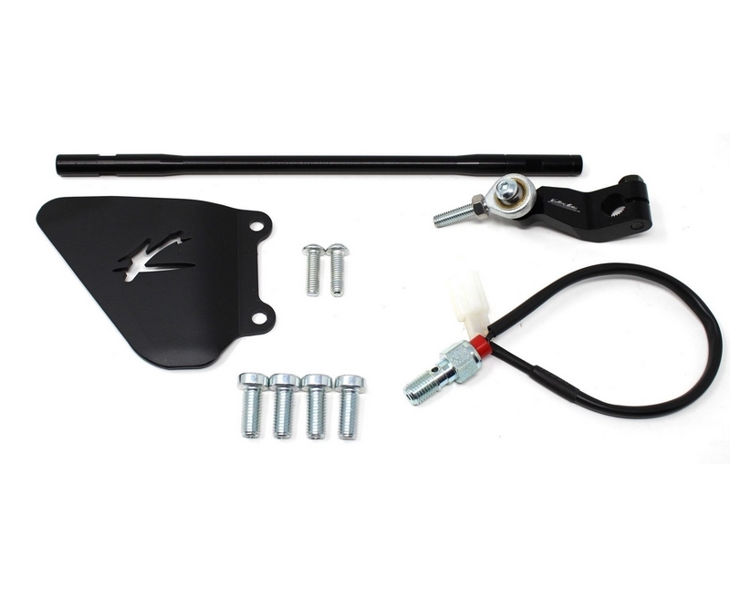 Rearsets are provided with black aluminum heel protections, the correct lenght shift rod, shift and brake ball joints, brake light pressure switch.